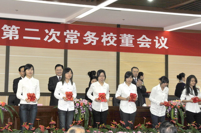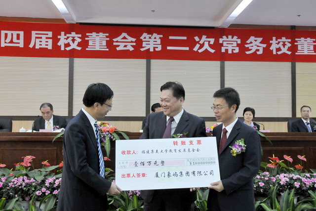 1028,集美大學(xué)校董歡聚,嘉賓云集。省長、校董會主席出席第四屆校董會第二次常務(wù)校董會議并作講話。省長、副省長陳樺、我司董事長王龍雛等為集大優(yōu)秀學(xué)生代表頒發(fā)“象嶼集團獎學(xué)金”。