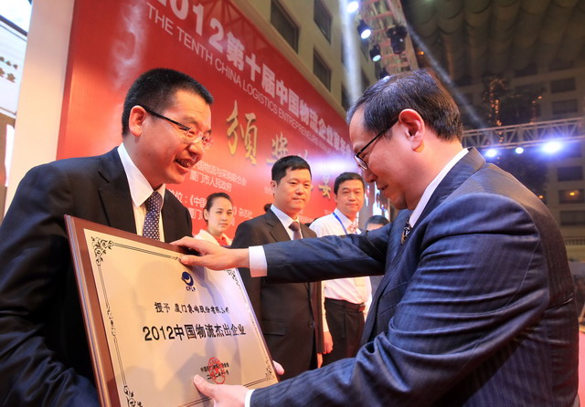 2012中國物流杰出企業(yè)頒獎現(xiàn)場,廈門象嶼股份有限公司榮獲“2012中國物流杰出企業(yè)”稱號