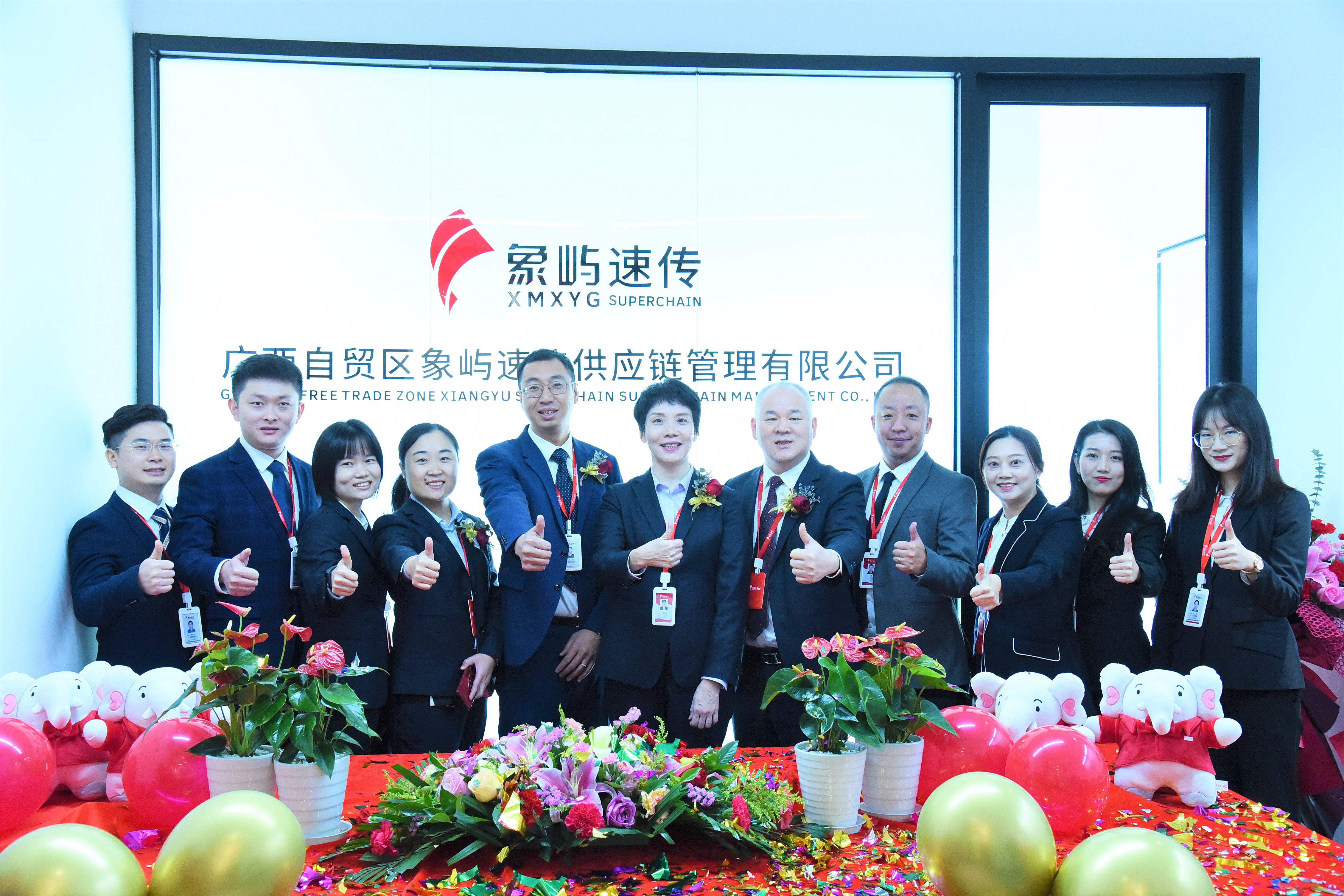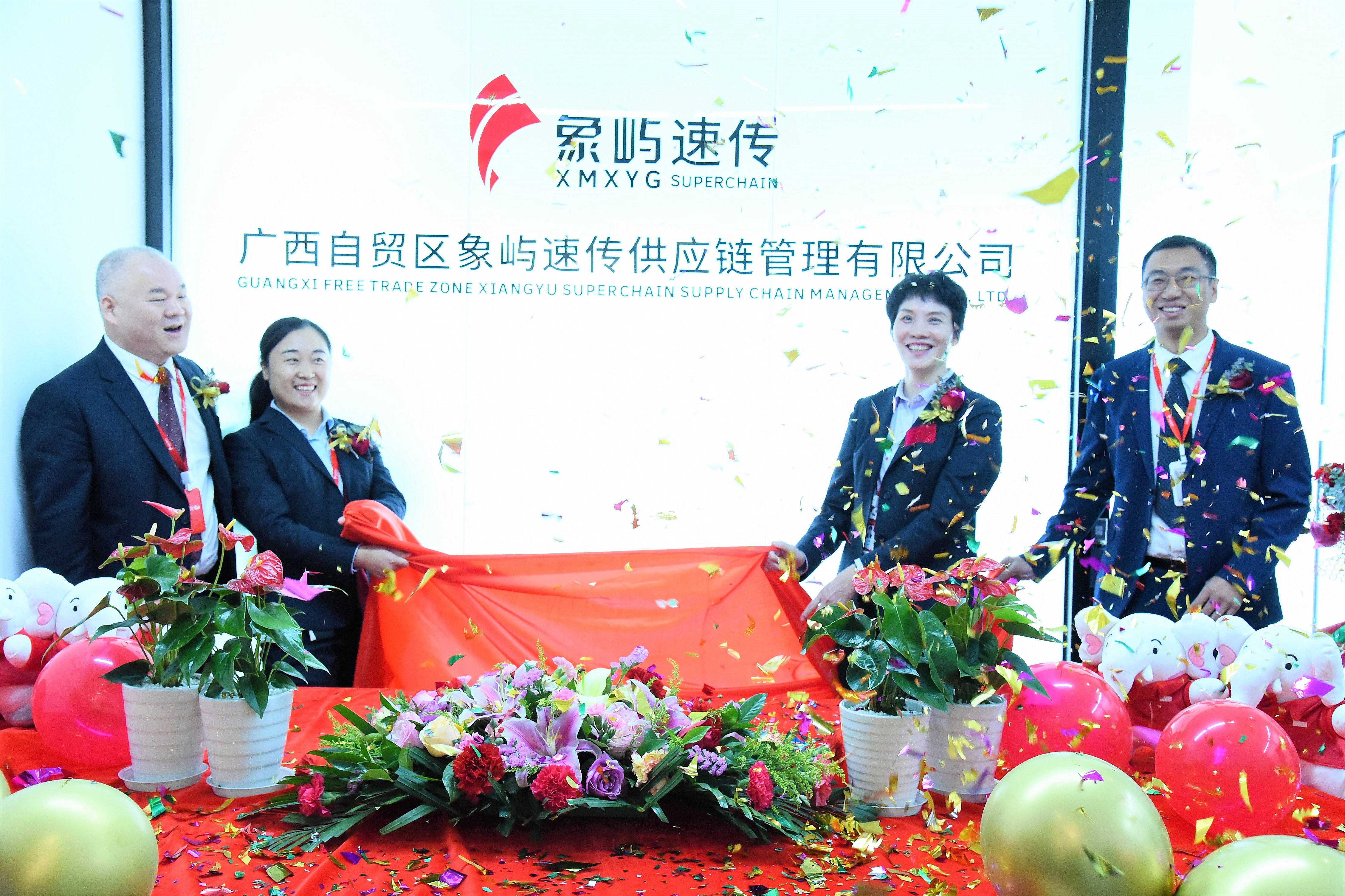 象嶼股份黨委委員、副總經(jīng)理、象嶼速傳總經(jīng)理肖靜勤,象嶼股份物流總監(jiān)、象嶼速傳副總經(jīng)理孫剛,廣州象嶼、廣州速傳總經(jīng)理杜靜靜,象嶼速傳西南物流事業(yè)部、廣西象嶼速傳副總經(jīng)理伍韜等為公司揭牌。